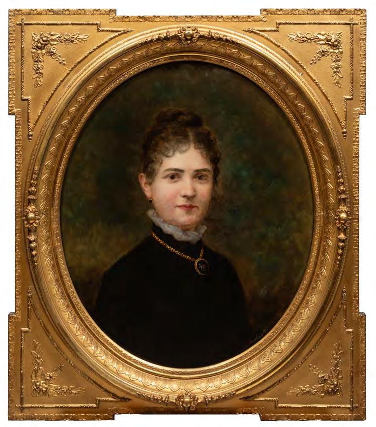 87. Ignazio Ricca Italian/New York 1860-1937, “Apple Girl”, signed lower right, titled and inscribed “Painted by Prof. I. Ricca” on paper label en verso, framed., 40 x 22 in. (101.6 x 55.9 cm.), Frame: 49 1/2 x 31 1/4 x 2 1/2 in. (125.7 x 79.4 x 6.4 cm.) [300 / 500]