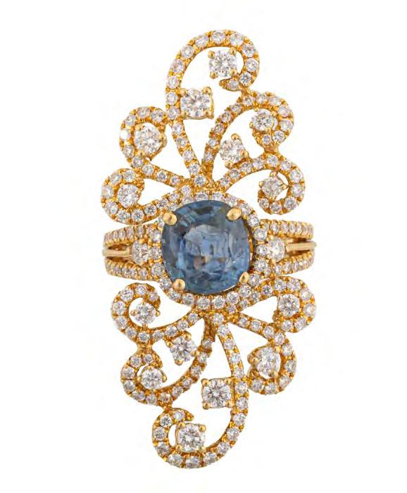 582. Platinum, Blue Sapphire and Diamond Ring, center oval mixed cut sapphire, wt. approx. 2.60 cts.; bezel and sprays with 2.43 cts. of round diamonds; size 6; GGA and GIA reports.Please Note: Payment for all jewelry and all couture items MUST be made by cash, check or wire transfer., [3000 / 5000]