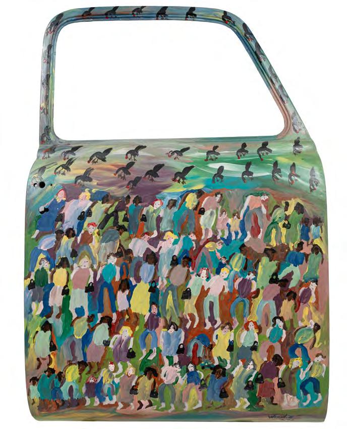 96. Troy Collins American/Montana 20th c., “No Place Like Home”, 2013, signed lower right, signed, titled and dated en verso, artist name inscribed on stretcher, framed., 24 x 29 3/4 in. (61 x 75.6 cm.), Frame: 28 3/8 x 34 x 2 1/2 in. (72.1 x 86.4 x 6.4 cm.)