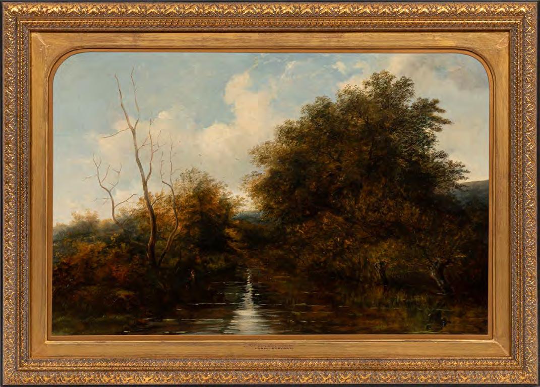 82. American School 1867, “Hunting Dog”, signed “H. Board” and dated lower left, framed., 29 1/2 x 36 1/4 in. (74.9 x 92.1 cm.), Frame: 40 1/4 x 47 1/4 x 3 1/2 in. (102.2 x 120 x 8.9 cm.) [1000 / 1500]
