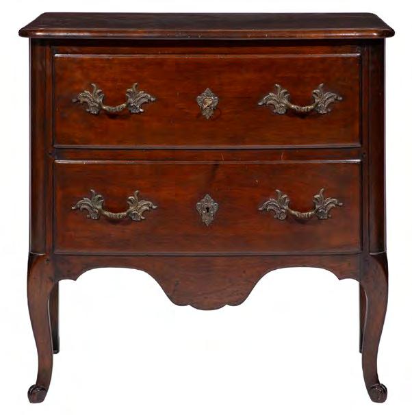 29. American Rococo Carved Rosewood Serpentine Dresser, 19th c., attr. to retailer Prudent Mallard, New Orleans, closely related to the Lansdowne group , urn and foliate crest, molded mirror, shaped molded marble top, three conforming drawers, molded apron, casters, 31 1/2 x 49 x 25 in. (80 x 124.5 x 63.5 cm.), mirror 59 x 37 x 3 in. (149.9 x 94 x 7.6 cm.)