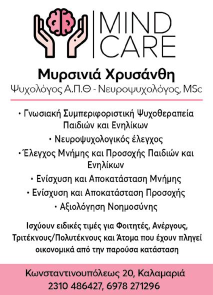 Χρυσάνθη Μυρσινιά Κωνσταντινουπόλεως 20 Καλαμαριά, Θεσσαλονίκη Τ: 2310 486427 M: 6978 271296