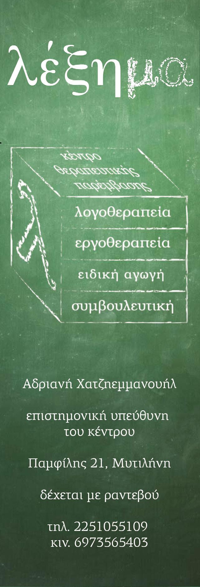 20 ΤΑ NEA ΤΗΣ ΛΕΣΒΟΥ Της ΑΦΡΟΔΙΤΗΣ ΜΑΡΓΑΡΙΤΗ, Λογοθεραπεύτρια - Ειδική παιδαγωγός