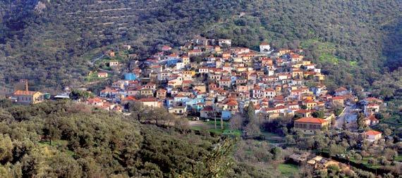 Mesotopos (78km away from Mytilene) is an attractive traditional settlement, located at about equal distance from its neighbouring villages Agra and Eressos and surrounded by bald, rolling hills that look like pyramids. Mesotopos is famous for its local Carnival, where the distinguished “Koudounatoi” (bell bearers) have the first role. The carnival boasts an Dionysian atmosphere that attracts visitors from any part of the island. The inhabitants of Mesotopos are considered to be the best craftsmen and the best traditional dancers in Lesvos, while the youngers are doing pottery, music and theatre. Make a stop at the scenic village square, where you will find a few nice coffeehouses. Mesotopos is well-known for its dairy products, the local trahana (dried food based on a fermented mixture of grain and yoghurt or fermented milk) and the local sweet preserves.