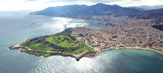 tress) of Mytilene is, which is one of the largest and best preserved castles in the Mediterranean area, built in 1373. Until the 6th century AD, this peninsula was initially a small island separated from the mainland by the narrow Strait of Evripus, which connected the current (south) port of the city with the old (north) port – the today area of Epano Skala (skalais an old Greek name for port). A big section of the Strait of Evriposran over the today Ermou street, the commercial, industrial and historical centre of Lesvos.