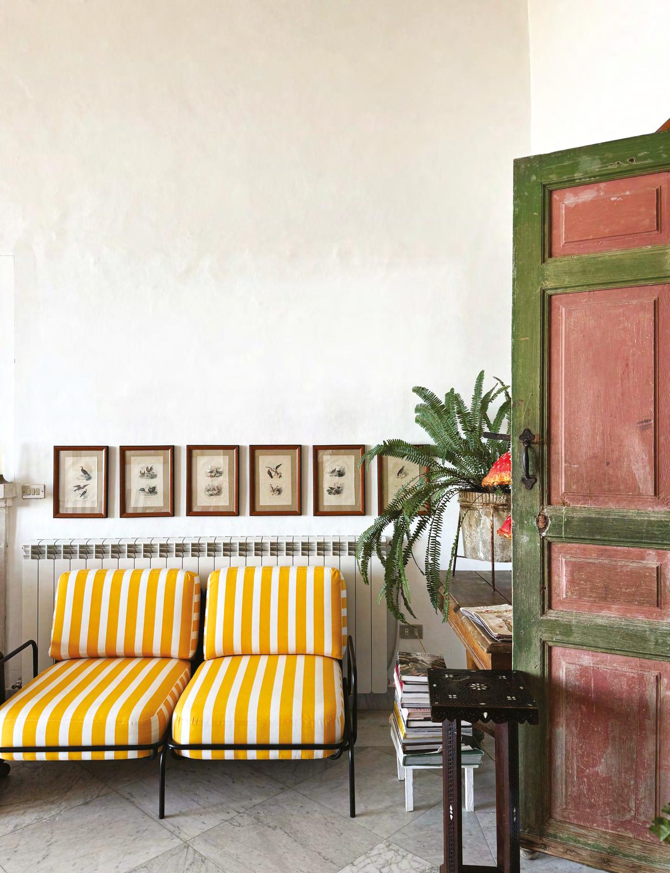 If Hotel de Russie was Rome’s glamorous grande dame, Hotel de la Ville would be the seductive little sister – located directly at the top of the Spanish Steps and ofering an intimate lobby and narrow corridors. Hotel de la Ville is a cheeky rif on the Grand Tour, the beloved 17th- to 19th-century tradition where the monied boys journeyed across the globe and Italy to become cultured young gentlemen. There’s stucco detailing, Napoleonic yellow wallpaper, teal, busts, grand portraits and repro micro-mosaics, which fow from the lobby to the 100plus rooms and suites. Rooms are a dream: think shades of blues and greens, with burnt orange and mustard, cheeky artwork, 18th-century trends like chinoiserie and neoclassical designs, objets d’art and bold patterned rugs.