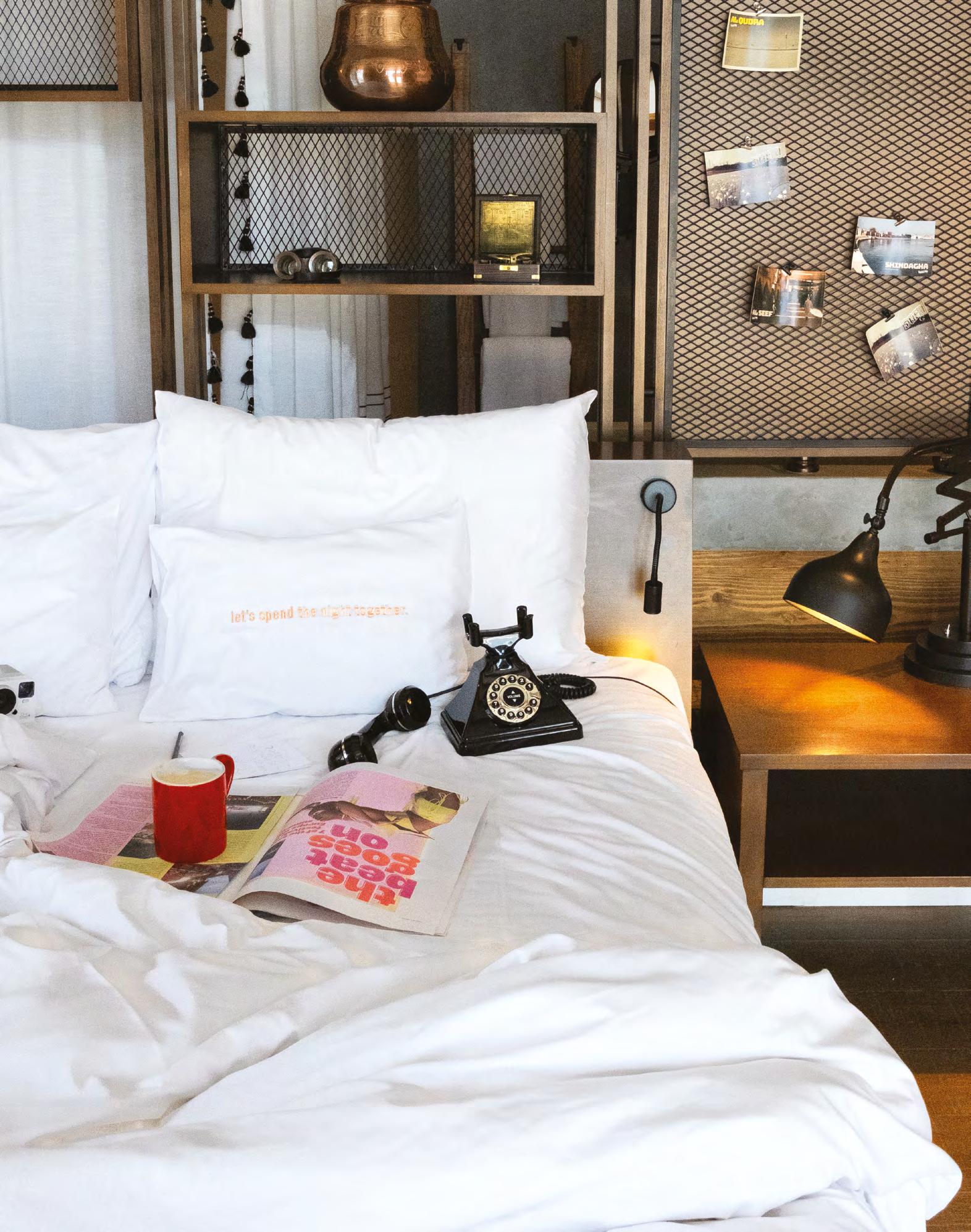 There’s a feeling of comfort when stepping into the cavernous lobby. There’s no overzealous staf watching your every move, and visitors can simply pop by to soak up the energy. Around the ‘Fountain of Tales’ – a towering globe fountain with hundreds of books – is a space where fashion pop-ups and art installations jostle by Schindelhauer bikes: propped up, ready for guests to wheel around the neighbourhood. Head to Nomad Day Bar for the best cofee in the city, and admire its artist-in-residence installation. For this season, it’s Where to Next? by Alex Lanier – more than just a painting; but a narrative that resonates with the essence of life’s journey.