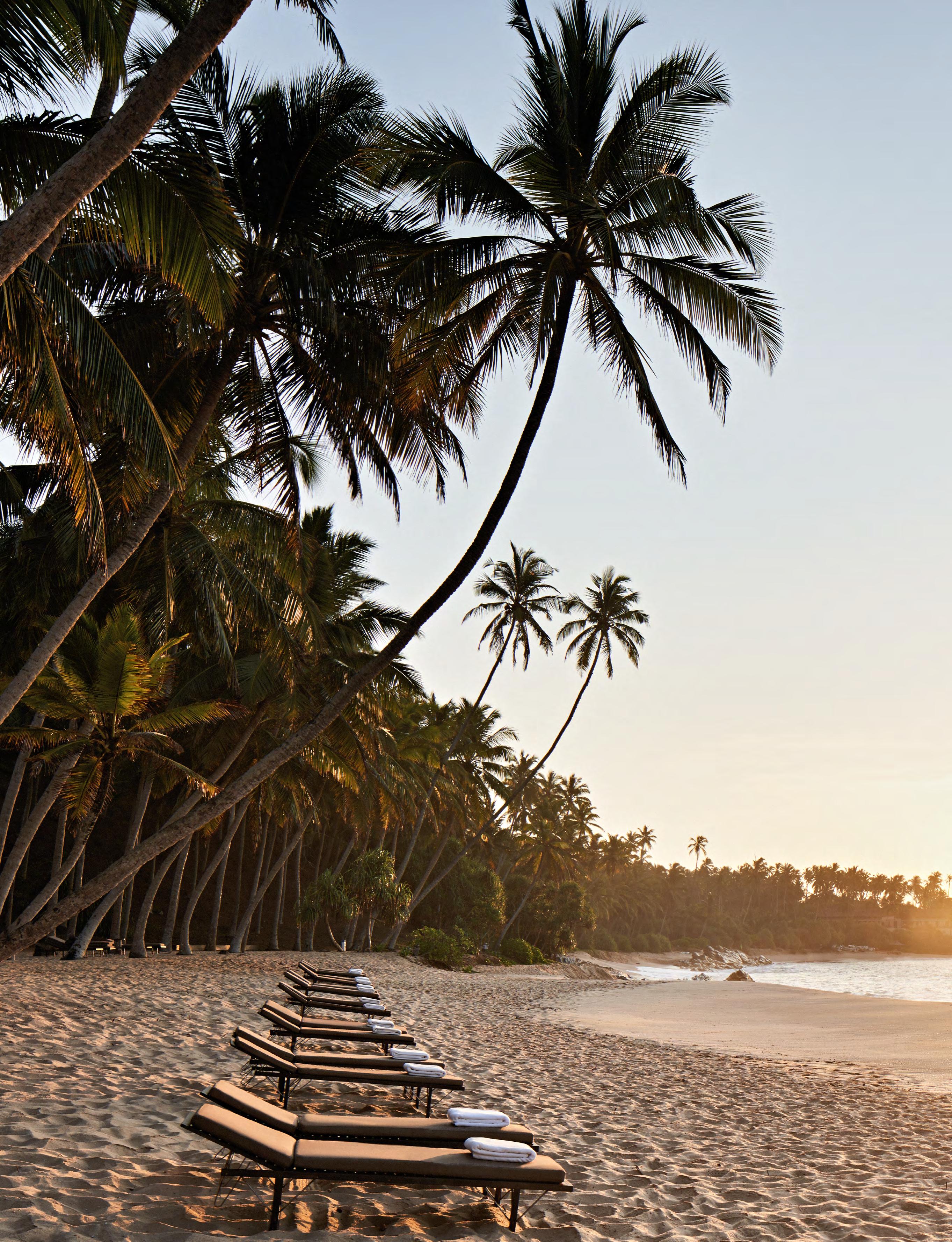 Sri Lanka’s south coast is dotted with fshing towns, and the coast of Tangalle is a short drive, or tuk-tuk, from the resort. The arrival is typically Aman – exclusive and out of