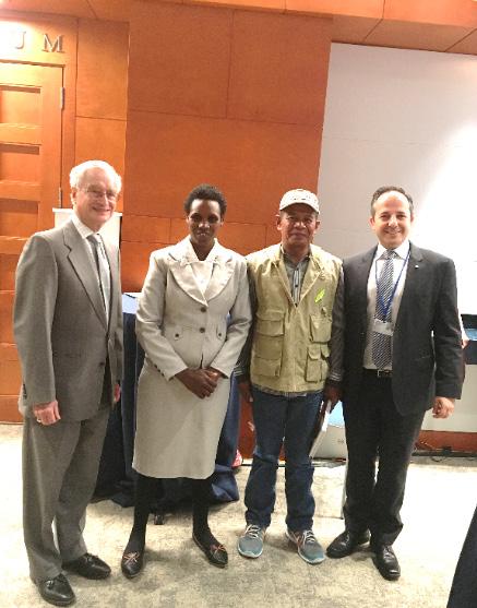 "Lançamento oficial de Better Life Farming em Washington DC, EUA, em abril de 2018, com o Prof. Robert S. Kaplan, da Harvard Business School, e com os pequenos produtores Ruth Kajuju (Quénia) e Henry Cambangay (Filipinas)"