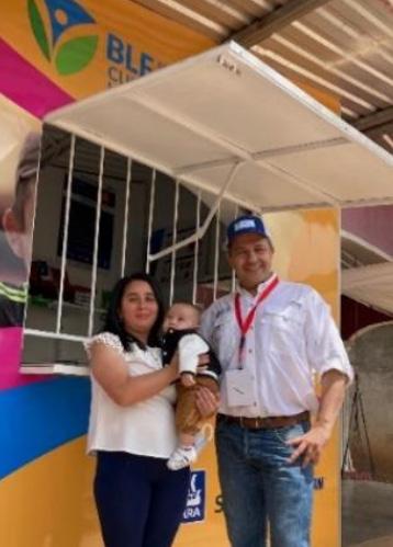 "Com Wendy Yaneth Carranza e o seu filho, em frente do recém-aberto Centro BLF em Tegucigalpita, Victoria Yoro nas Honduras (2023)"