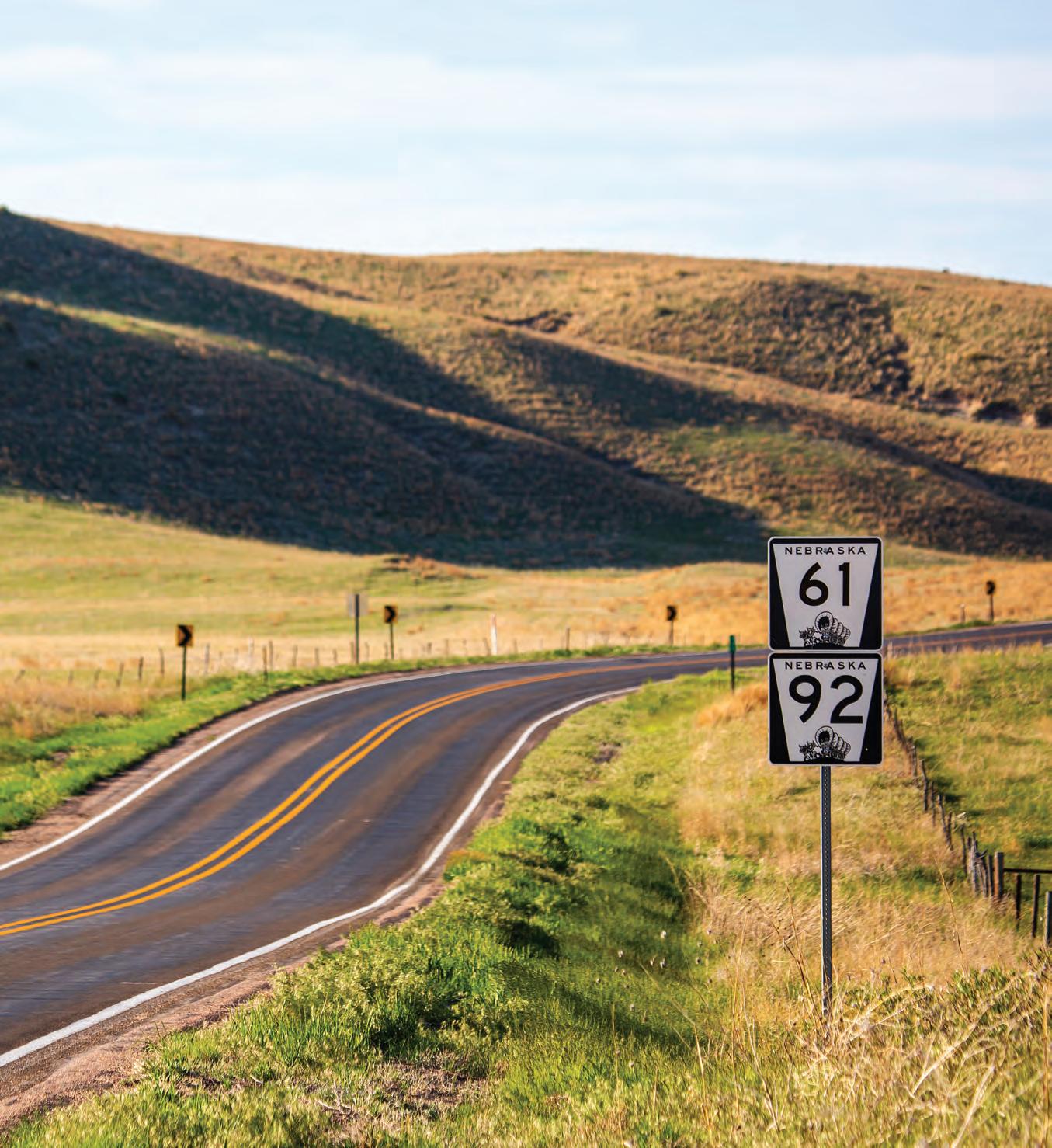 “Toward Zero Deaths” are three key words in the Nebraska Department of Transportation’s (NDOT’s) overall safety goal to reduce deaths and injuries on Nebraska roadways. Topping the list of performance measures, safety is integrated into every aspect of roadway construction and maintenance, as well as non‑infrastructure projects. NDOT continues to focus on identifying and prioritizing projects to address safety concerns such as roadway departures, intersection safety, occupant restraint, and distracted driving crashes. New technologies are being implemented like bridge anti icing systems, improved winter operations, and the “beveled edge” to aid in vehicle re‑entry onto the highway after a roadway departure. NDOT is also implementing effective countermeasures, like centerline and edge line rumble strips, and warning signs for statewide projects.
