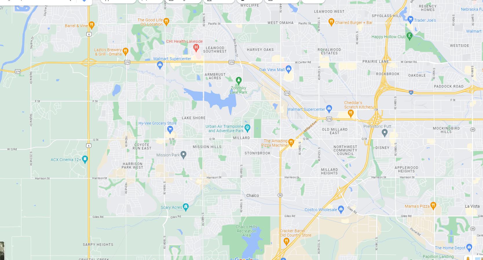 S 25TH ST S 10TH ST Q ST MADISON ST HARRISON ST CHANDLER RD S 30TH ST S 36TH ST S 42ND ST S 48TH ST M S S O U R I R I VER CORNHUSKER RD HARLAN DR CAPEHART RD FORT CROOK RD S S 25TH ST S 36TH ST HIDDEN VALLEY DR 75 75 34 75 75 370 BELLEVUE OFFUTT AIR FORCE BASE