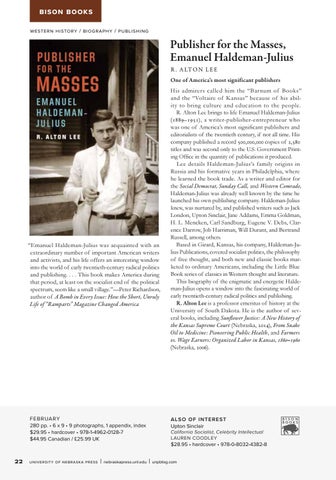 Publisher for the Masses, Emanuel Haldeman-Julius R . A LT O N L E E One of America’s most significant publishers