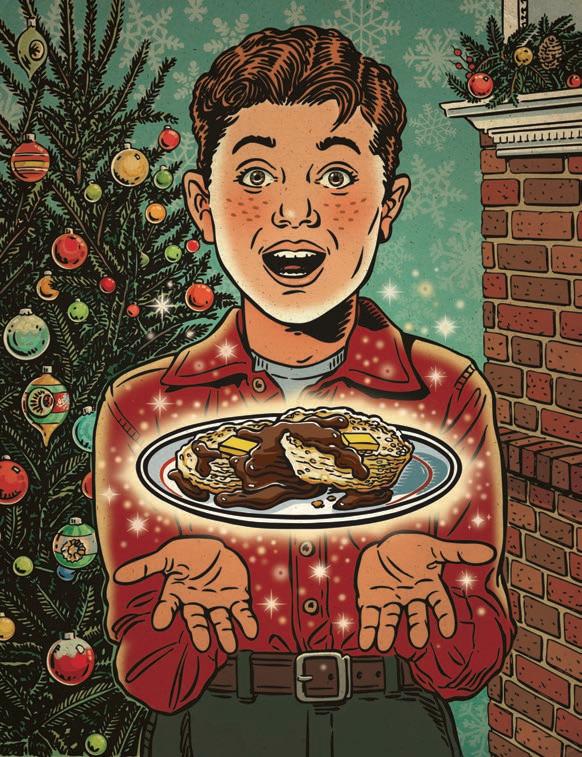 On those special mornings when they were available, we all made big plates of it while Mom stood back and ate her biscuit with jelly like a normal human. If you listened carefully above the racket of forks on plates, you might even hear her mutter something about a bunch of weirdos. D
