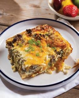 4. Spread sausage mixture over cooked crescent crust. Sprinkle half the cheddar and mozzarella over sausage. Pour egg mixture evenly over cheese and then sprinkle on remaining half of cheeses.