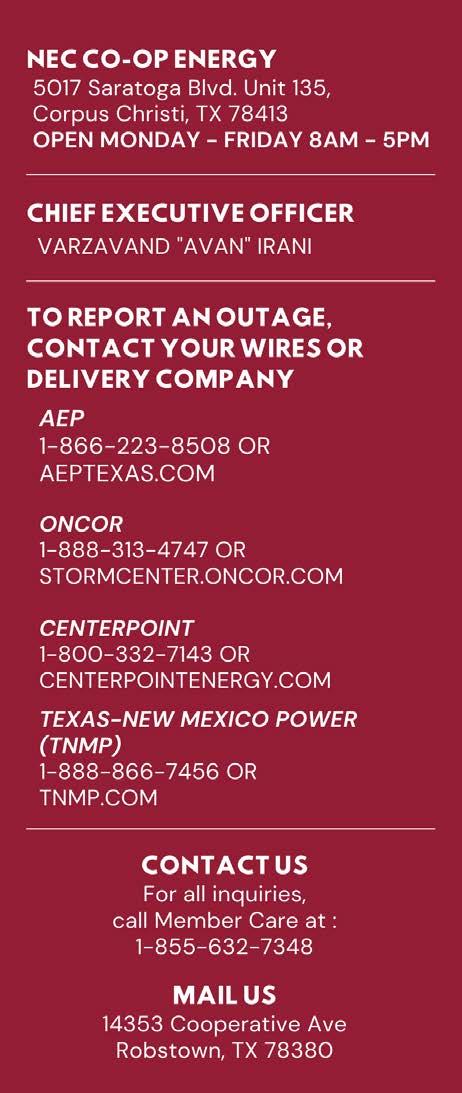 COPYRIGHT All content © 2023 Texas Electric Cooperatives Inc. All rights reserved. Reproduction of this issue or any portion of it is expressly prohibited without written permission. Willie Wiredhand © 2023 National Rural Electric Cooperative Association.