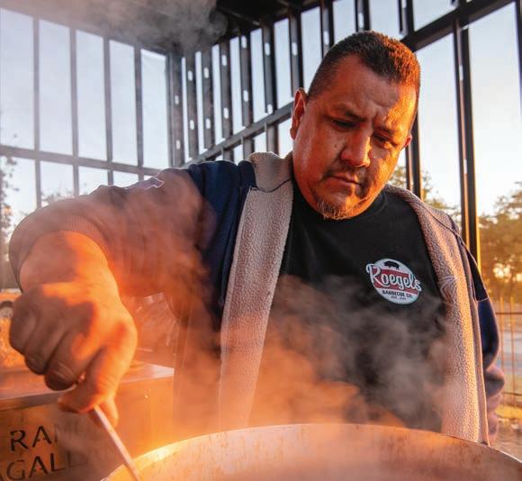 Pitmasters from Panther City BBQ in Fort Worth grilled for 40 hours, 49 minutes and 17 seconds July 13–15, 2022, to set the record. Chris Magallanes, above, and two others cooked 450 pounds of hamburgers, 300 pounds each of tablitas (beef short ribs) and fajitas, and 100 pounds each of onions and peppers.