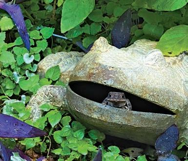 “A tree frog finds shelter for the day in the leaf whorl of a canna lily.”