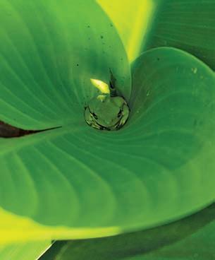 “A tree frog finds shelter for the day in the leaf whorl of a canna lily.”