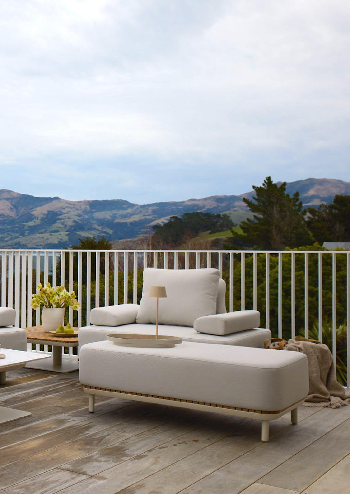 Each element of the Dawn setting has been curated to allow for very simple configurations yet the layout possibilities are endless. Customize your Dawn setting to suit any space with your choice of sofa, single seat, ottomans and table elements. Seating arrangements can easily be composed without fixing