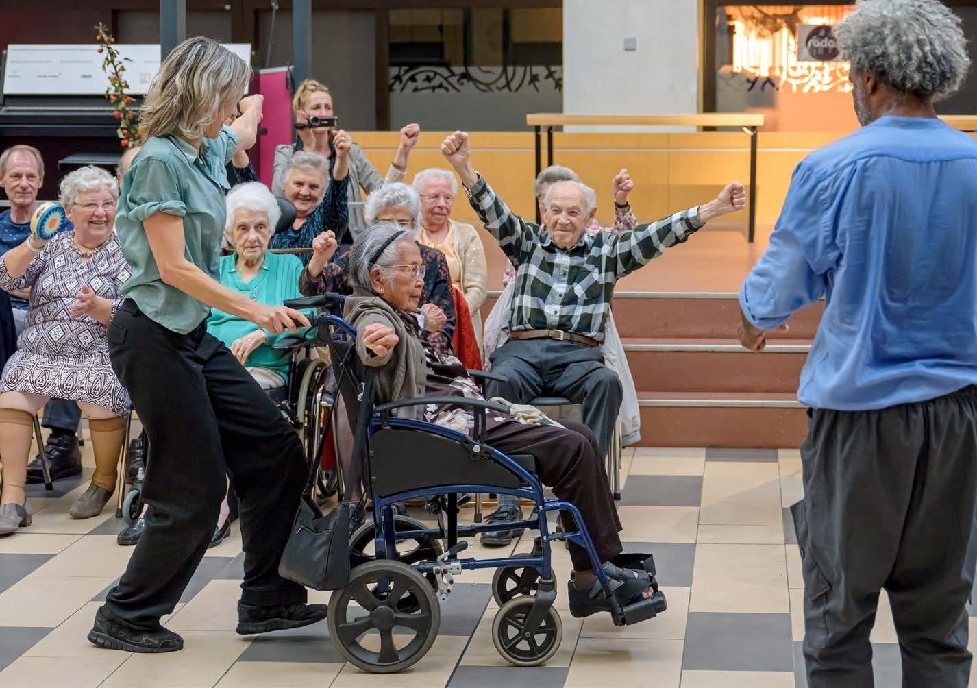 Een mooi voorbeeld van zo’n dansontmoeting is het project Kijk in mijn ogen dat ouderen in woonzorgcentra in 2023 in verbinding bracht met kinderen. Axelle: “Zowel de ouderen als de kinderen volgden voorafgaand aan de ontmoeting workshops van PRA Muziektheater. Voor de kinderen, die afkomstig waren uit verschillende Maastrichtse wijken, was het programma erop gericht om elkaar beter te leren kennen. Met de ouderen zijn we op zoek gegaan naar wat dans voor hen betekent. En dat was heel veel. Weggestopte herinneringen kwamen bovendrijven. Met als resultaat dat veel ouderen tijdens de voorstelling spontaan mee dansten. Prachtig om te zien.”
