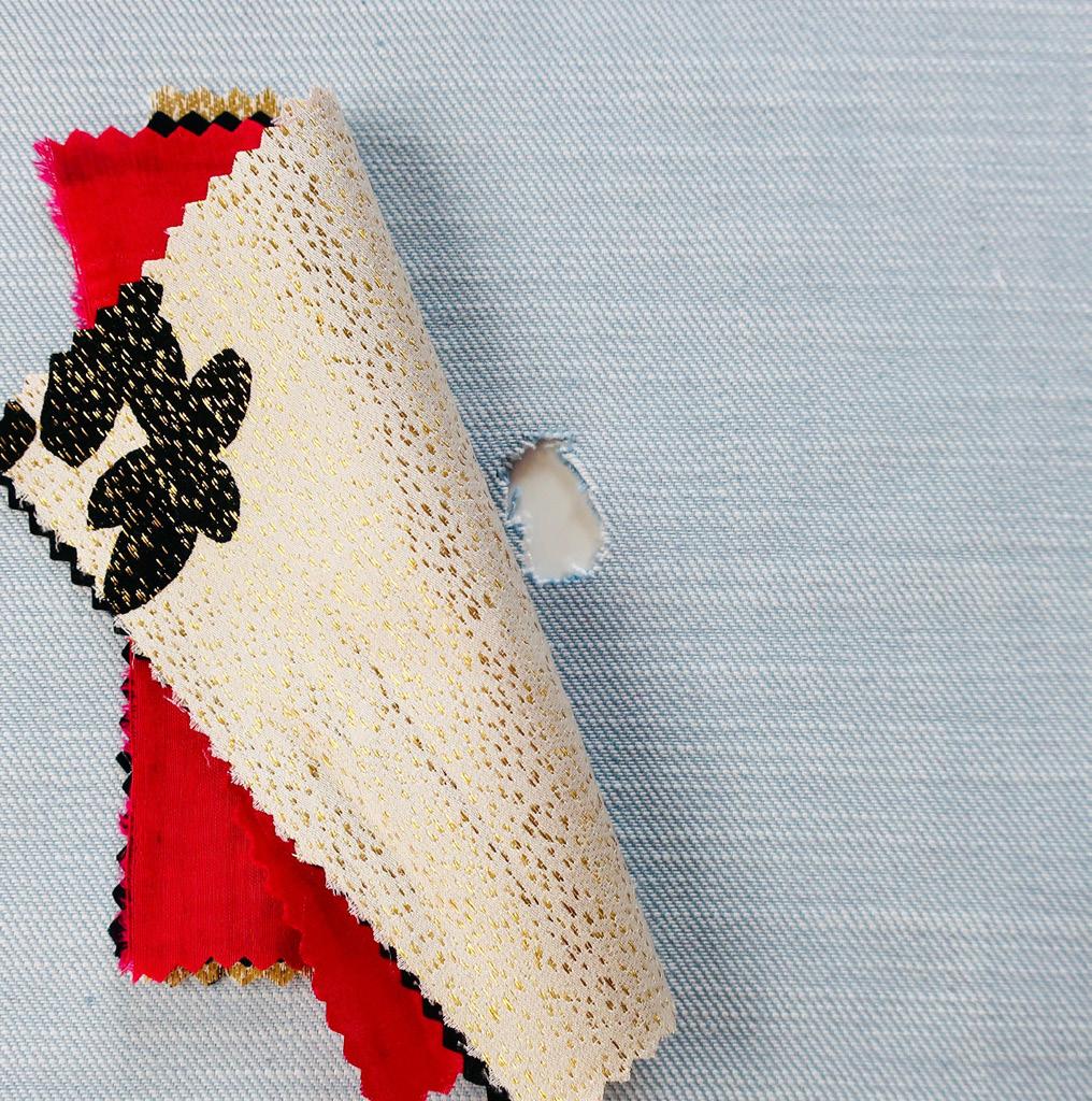 Kies nu 1 contrasterend ‘onder-lapje’ uit de lappenmand om onder het gat te plaatsen.