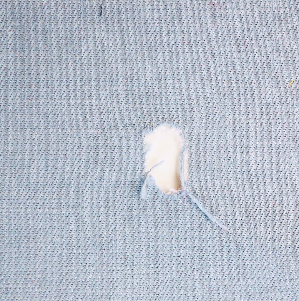 Om de reparatie meerlagig te maken, maak voorzichtig een sneetje in alléén de bovenste laag van de onderlapjes, in het midden van de vorm.