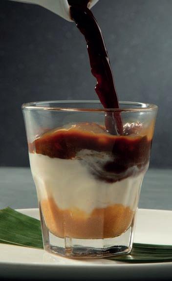 Servido con helado de gulupa, copoazú o vainilla, crumble de chocolate, crema de vainilla y sal marina. $15.600