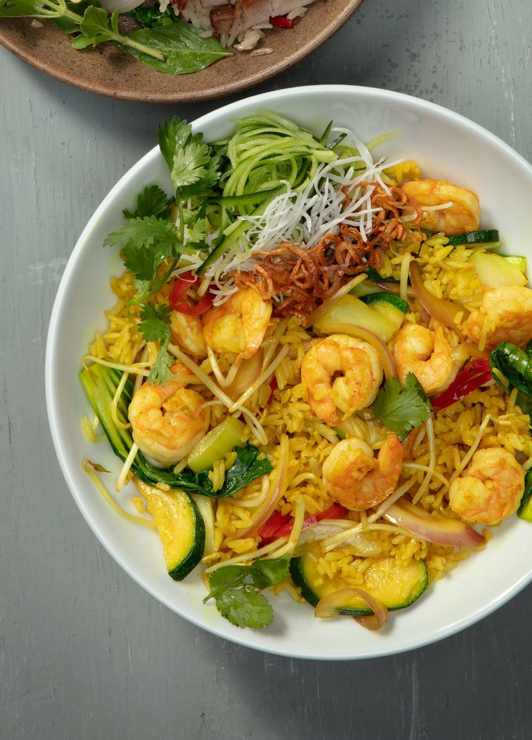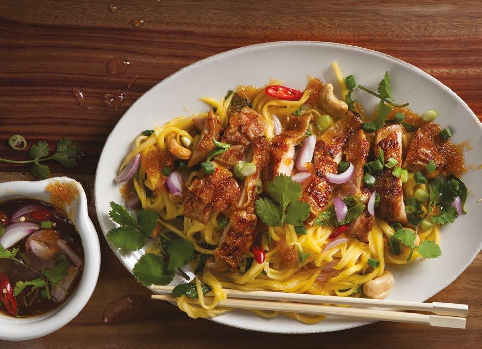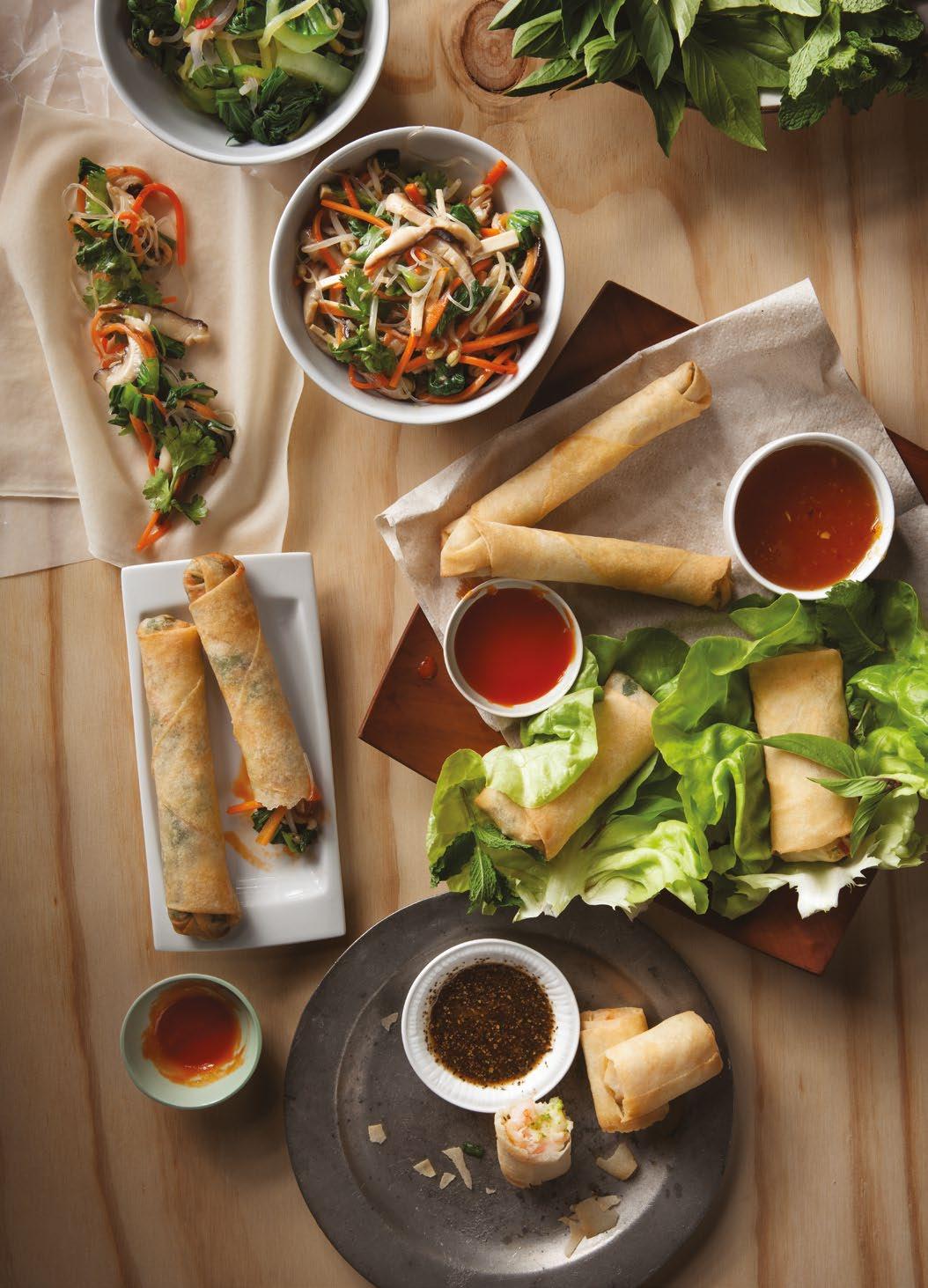 Camarones, pechuga de pollo, pasta vermicelli crocante, vegetales, albahaca siam, hierbabuena, maní y vinagreta vietnamita con chile y nam-pla. $35.900