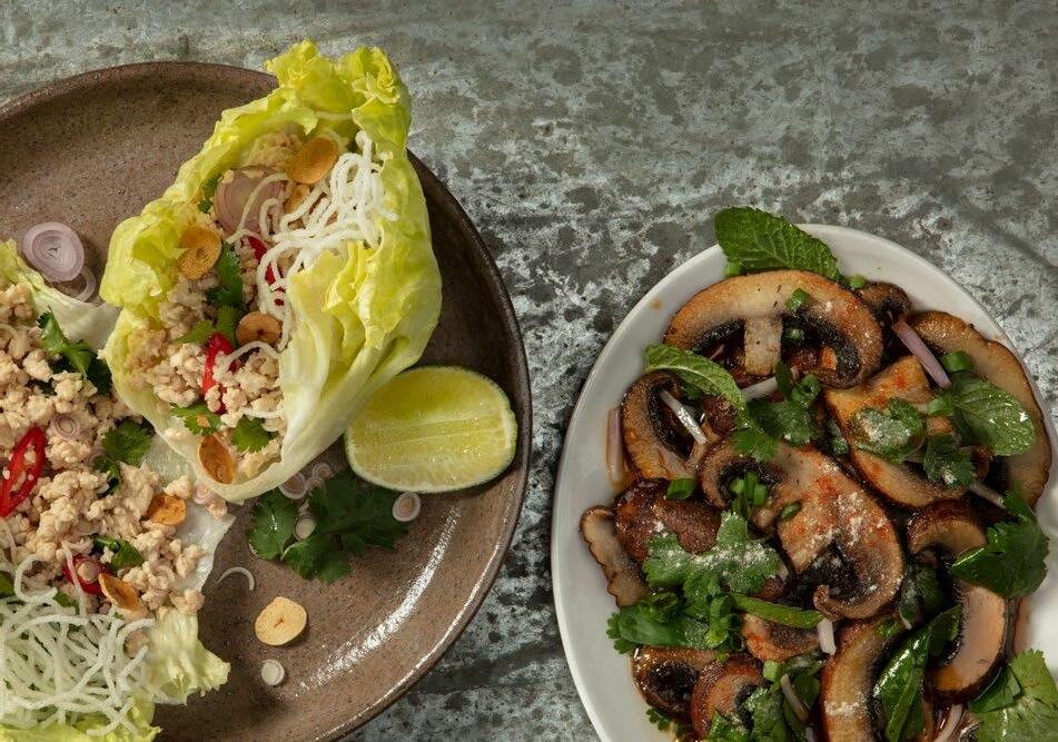 Pechuga de pollo picada, aromatizada con limonaria, cilantro, limón, nam-pla, chile y chips de ajo, servida sobre lechuga según disponibilidad (cogollos europeos o batavia). $18.900