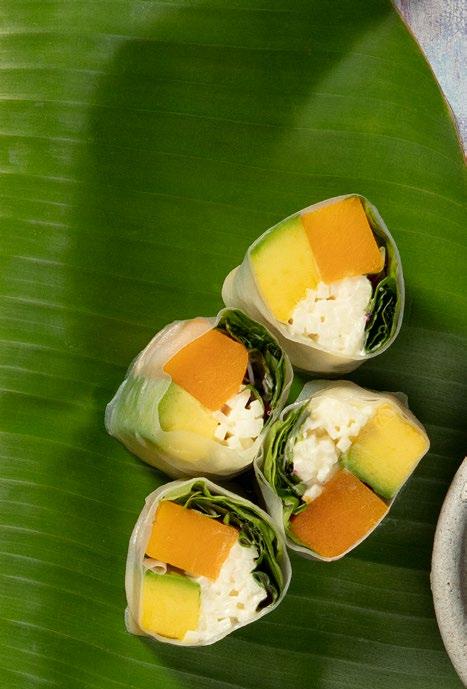 (6u) Trucha ahumada, lechuga, jícama remoulade, mayonesa, aguacate, hierbas y germinados. Servidos con salsa vietnamita con nam-pla y maní. $26.900