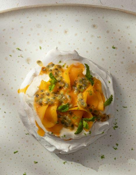 Merengue con salsa de maracuyá, crema de vainilla, mango y gulupa. $14.900