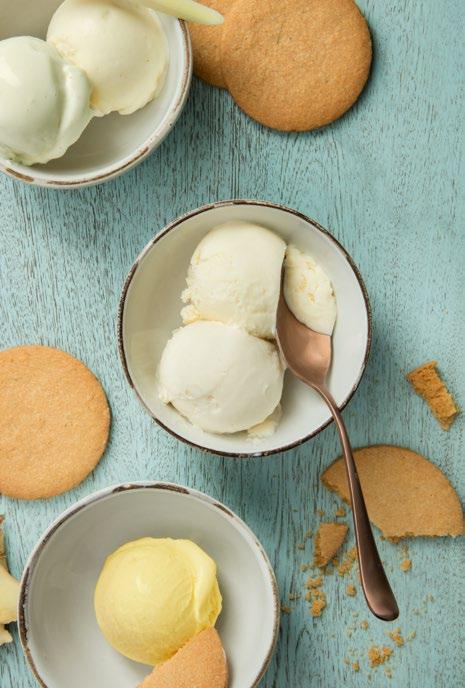 Vainilla, copoazú o gulupa, con galleta de almendras y limón.