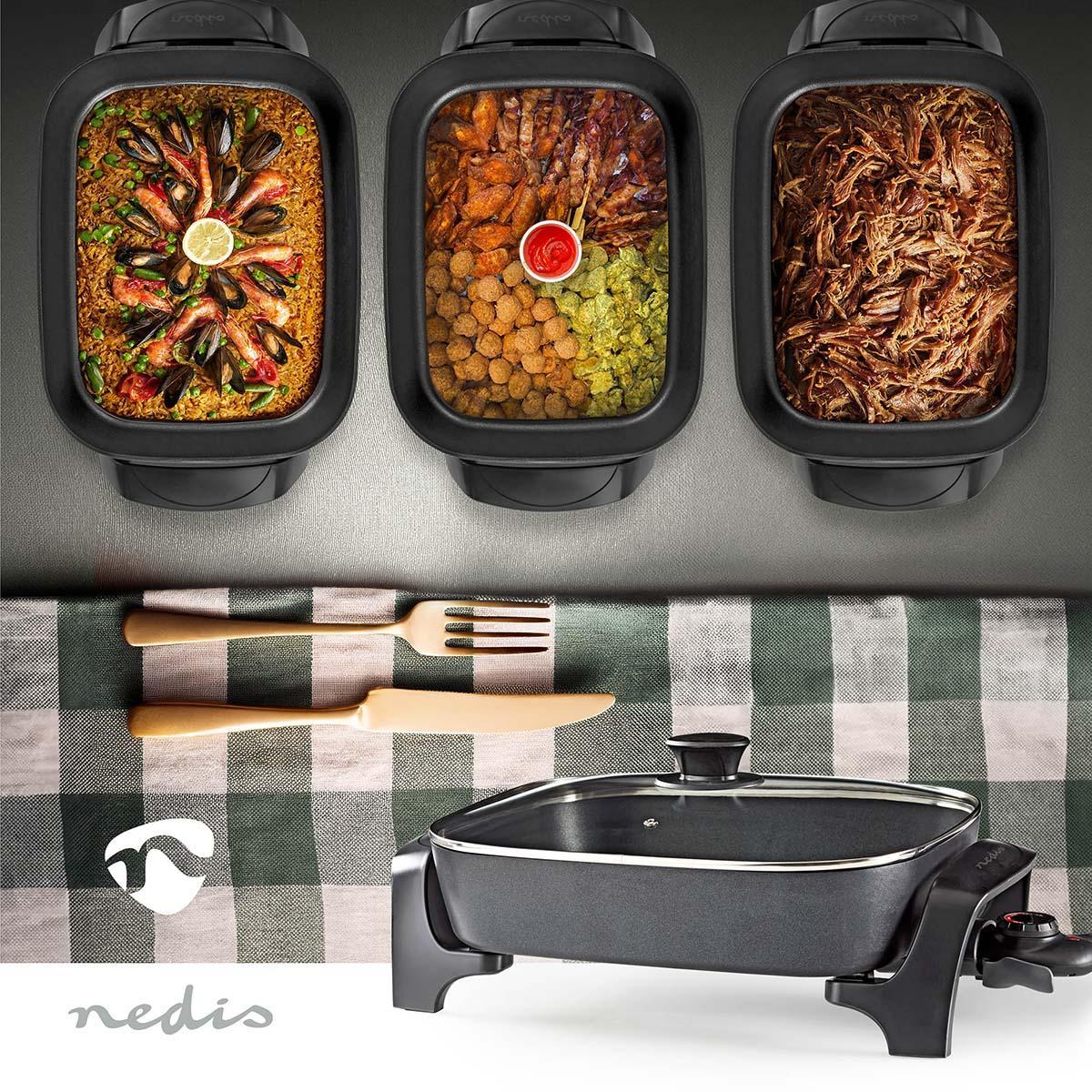 • Rectangular electric skillet pan with small footprint