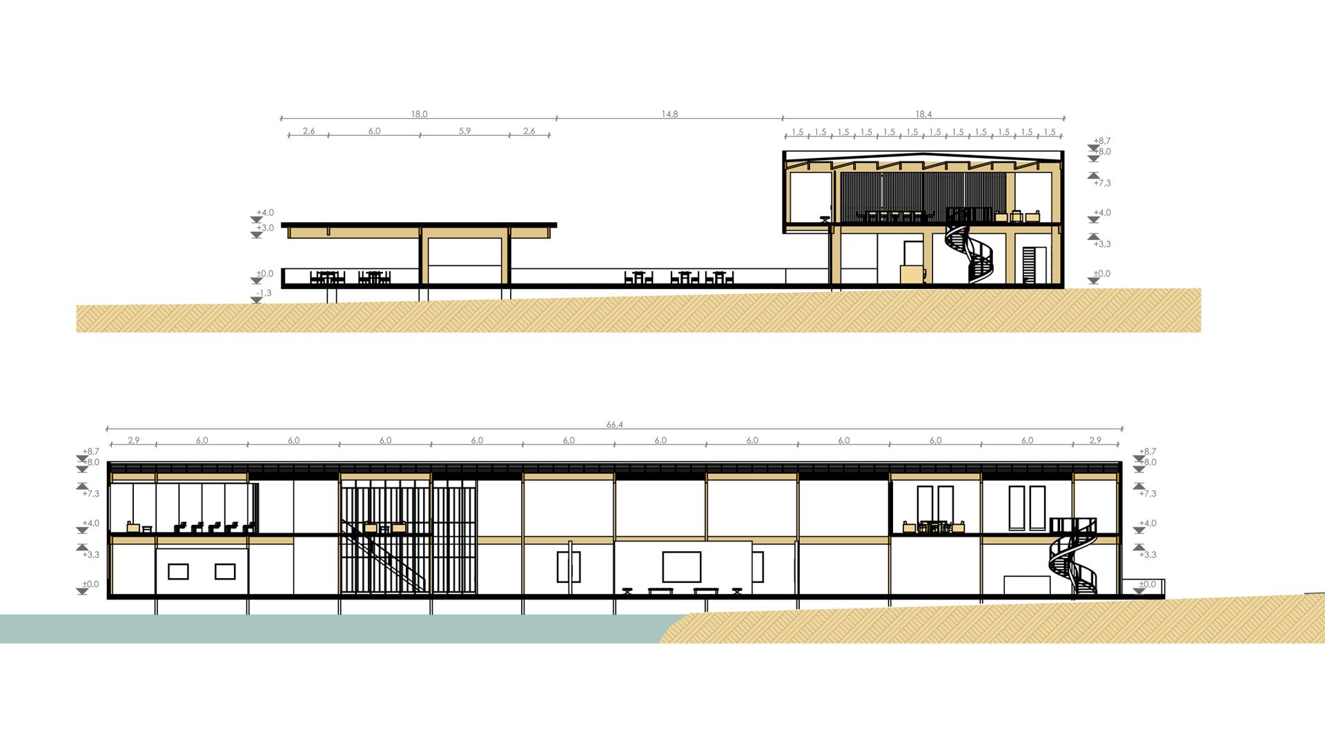 The project was made for the area of Albufera, the national park near Valencia. The task was to create an abstract museum for a local artist (Manuel Rey Fueyo) on this lakeside location. The program allows approximately 40 paintings to be exhibited at the same time and appropriate conditions for storing the rest of the collection. Includes a multi-function area which is suitable for housing workshops, seminars, concerts. A small café is located next to the museum, where you can enjoy a coffee after the exhibition and admire the landscape. The building has a strong relation to its surroundings as the aim was to showcase not only the artworks but also the area’s natural heritage