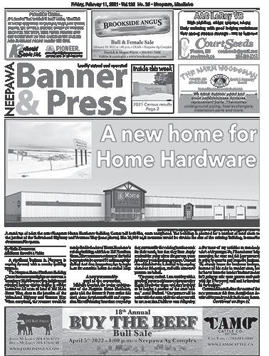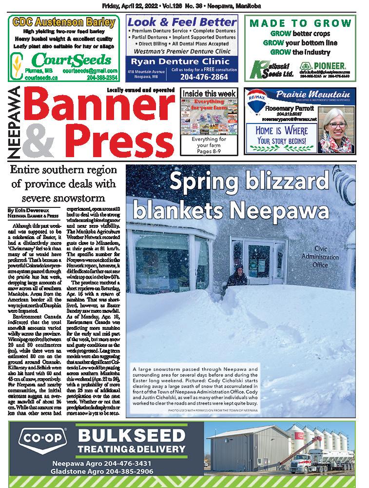 Friday, May 6, 2022 • Vol.126 No. 40 Neepawa, Manitoba Banner & Press neepawa Locally owned and operated Everything for Your Farm Pages 12 13