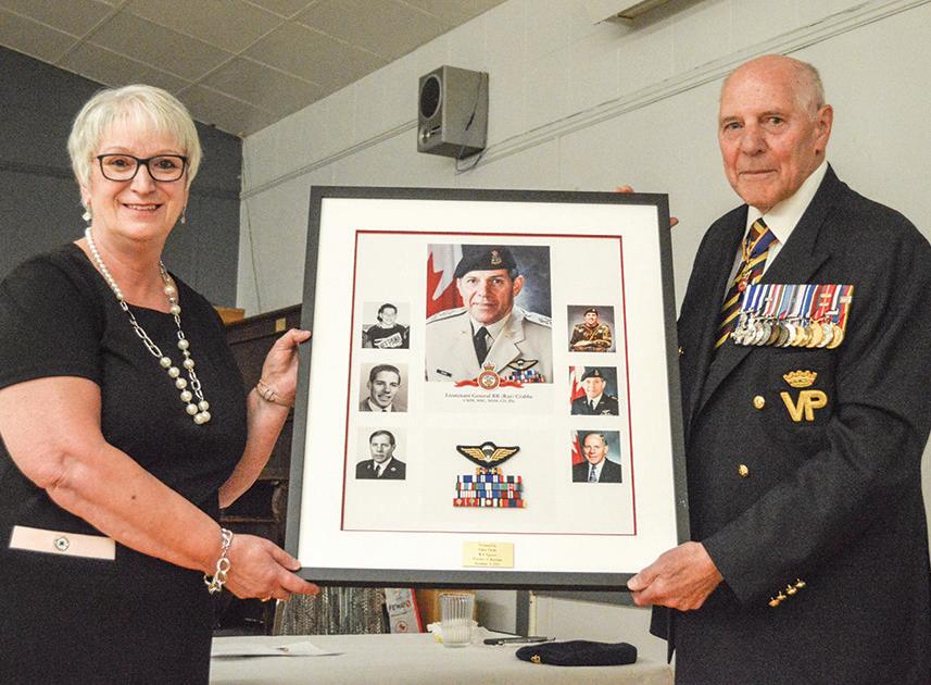 July 2022: Agassiz MLA Eileen Clarke was given the honour of presenting Lieutenant-General (Ret.) Ray Crabbe with his commemorative portrait, which will hang proudly upon the wall at the Neepawa Legion building.