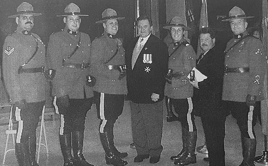 As part of the celebration for the Queen’s Golden Jubilee, medals were presented to several RCMP officers across Canada to recognize their community service. Those pictured here, from left to right, are: Bob Brossart, Brian Huff, Gord Hay, Lieutenant-Governor Peter Liba (who made the presentations), Michele Peters, Mark Morehouse and Ron Obodzinzki.