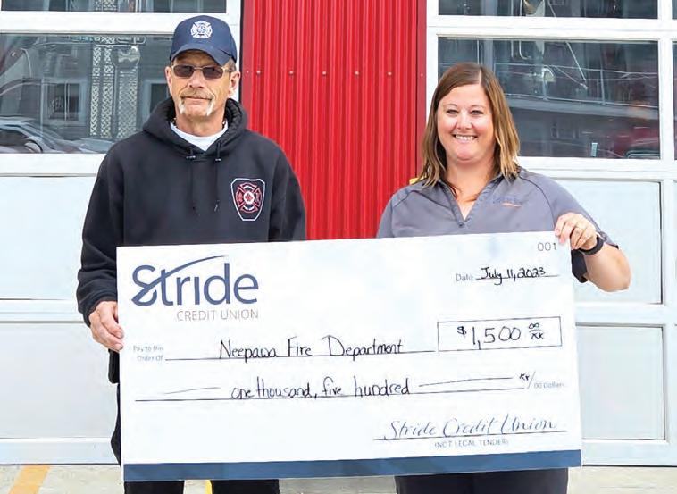 This year’s tournament will take place at the beautiful Neepawa Golf and Country Club on Thursday, September 14. We have sponsorship opportunities available and can accommodate a few more golfers. If you are interested in getting involved, please email golftournament@stridecu. ca or call Stacy at 204856-2729. SUBMITTED Neepawa Fire Department received $1,500 from Stride Credit Union.