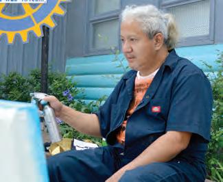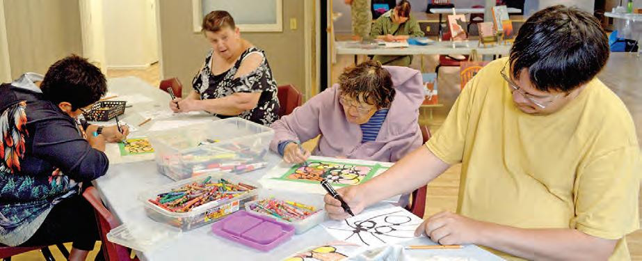 Top: Touchwood Park artists hard at work. Bottom left: A needle felt creation by Donna Freeman. Bottom middle: A close up of Rrain Prior’s work in progress embroidery. Bottom right: Clemente Villamayor Jr. carefully considers his ‘canvas’. See more weekend activities on Page 12.