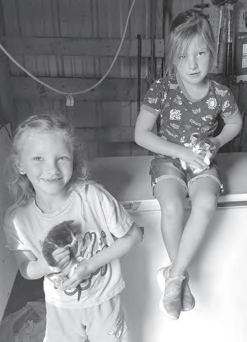 No farm is complete without kittens and kids. Cousins Hannah and Kacey showing off two of 14 sweet fluff balls at the Camo Cattle Company farm on Tuesday. The girls were taking a break from their duties at the registration table for the Manitoba Angus Association Summer Tour to cuddle the kittens.