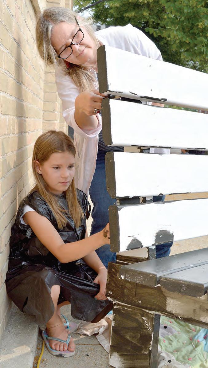 Neepawa was swept up in the arts on Saturday, July 22 with the annual Riverbend, ArtsForward, Farmery Tours (R.A.F.T.) event. All were welcome to come to ArtsForward that day and see a variety of artists at work, enjoy live music and more. As part of the R.A.F.T., a series of benches were also painted by local artists to ‘art-bomb’ the town. These can/will soon be found at: Brews Brothers Bistro, BMO, It’s Time, hid’n hollow, Red Apple and Salvation Army. Left: Shannon Desjardin and helper Zoey were in the zone while painting a bench for Brews Brothers Bistro.