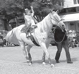 Bottom left: Leaders of the parade were vehicles and members from the Gladstone Legion. Bottom right: A young horseback rider, escorted with a handler, waves to the crowd.