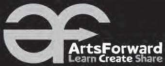 Bottom left: The outline of a tree is carefully painted by Martin.