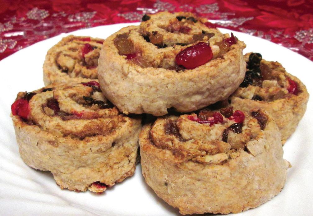 The use of whole wheat and oatmeal give a nice nutty complimentary flavour to the sweet fruit filling. A fresh batch of these delicious rolls can be made in short order for your breakfast quests.