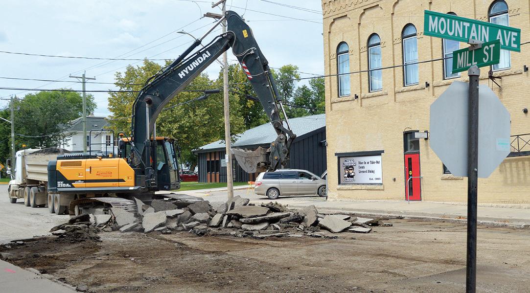 Crews were on the job at the corner of Mountain Ave. and Mill St. in Neepawa this week tearing out the old street surfacing in preparation for new asphalt. A portion of the surfacing at that particular area of Mountain Avenue was also taken out and is planned to be repaved.