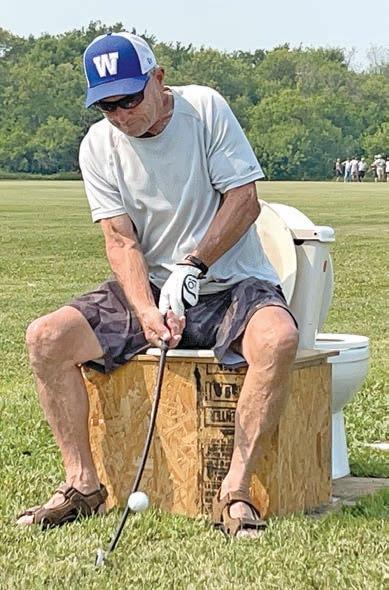 Pictured far left: One of the many laughter inducing portions of the Fun Golf involved, as stated above, ye ol’ porcelain throne. Golfers took a seat and made their best swings!