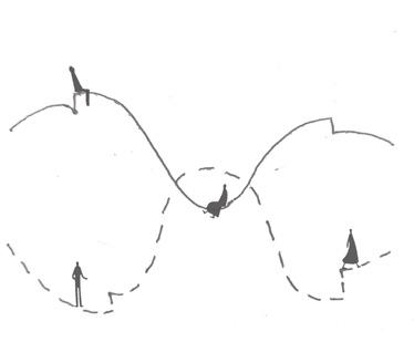 Self shading by undulating mass; formation of pockets of open spaces.