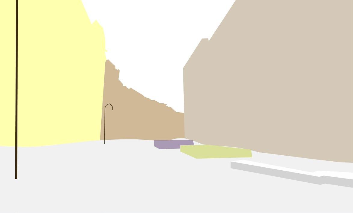 Designated pedestrian pathway in the allies, connecting the main square- allowed due to well-established movement for vehicles Creates a sense of permeability.