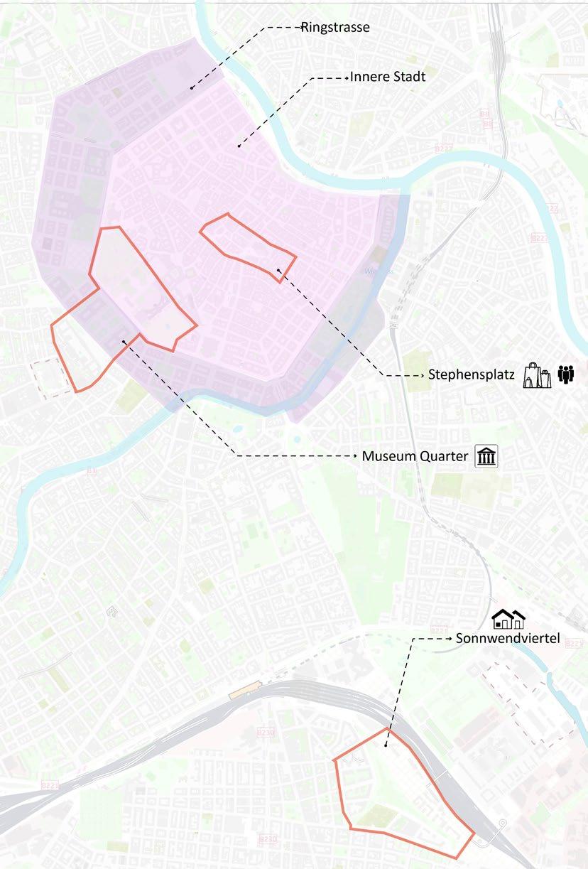 Sonnwendviertel is selected for the study as it is a new development which has put emphasis on designing a sustainable transport friendly neighbourhood by integrating a pedestrian friendly environment. It has a good access to sustainable modes transport.